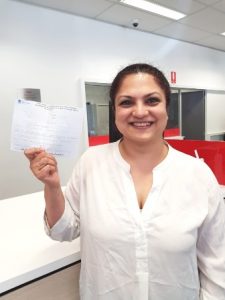 It’s been a big day for our student Jane Henry. Jane passed her driving test on the first go this cloudy morning at Botany RMS and successfully converted her overseas driver’s licence into Australian one with terrific 97.1% performance mark. Well done! Our congrats Jane! You really deserved it. We wish you to be a safe driver. Keep in touch.